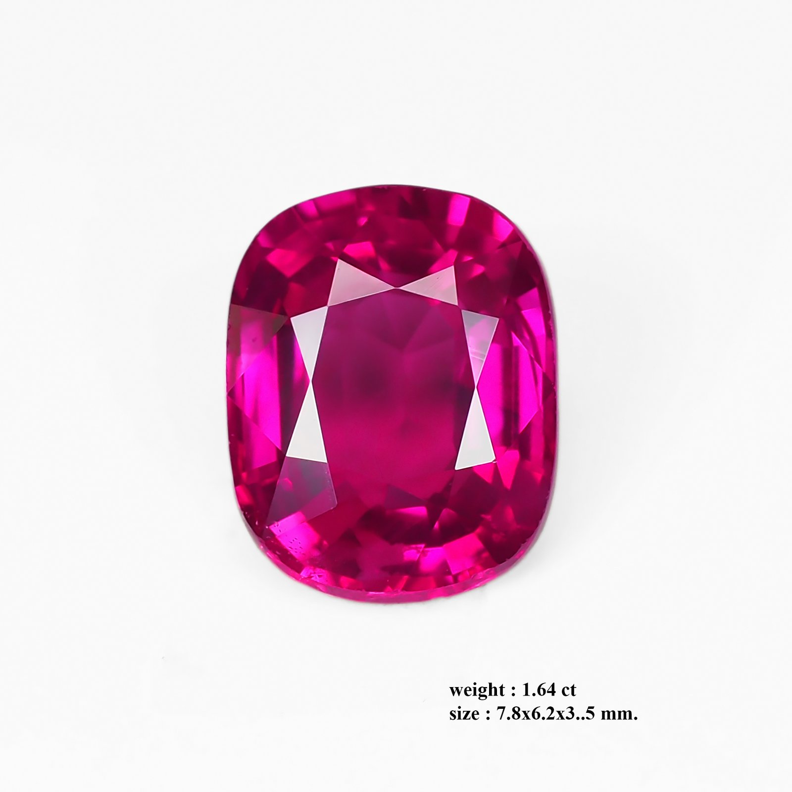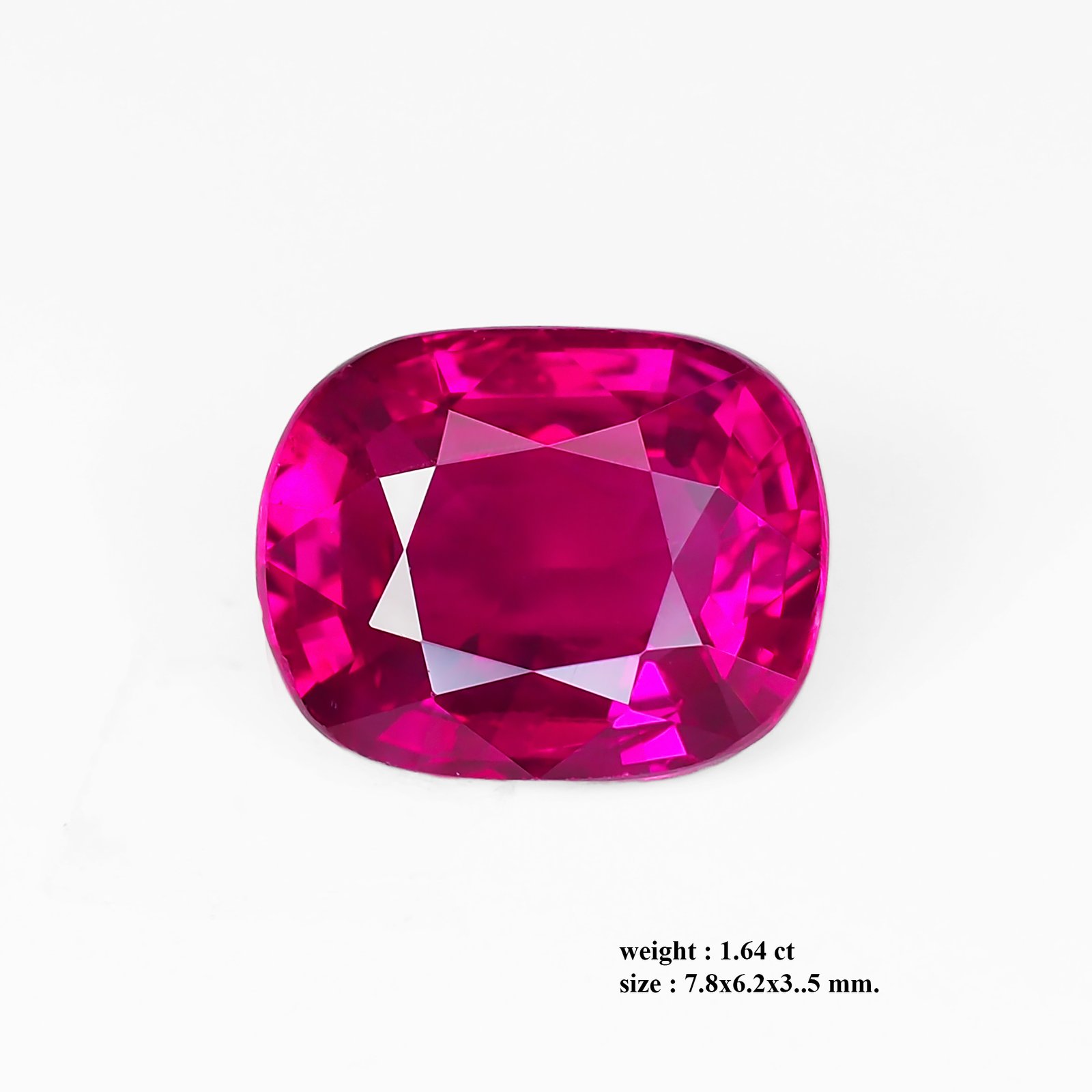 This exquisite unheated Burmese ruby radiates a vivid, saturated pinkish-red that shimmers across its refined cushion-cut facets. Weighing 1.64 ct and measuring 7.8 × 6.2 × 3.5 mm, it strikes an ideal balance of presence and poise—perfect for a bespoke ring or pendant. Untreated and naturally vibrant, it displays the famed Burmese fire: a lively interplay of light and depth that captivates connoisseurs and romantics alike. With its premium color, significant carat weight, and pristine, unenhanced origins, this gem stands as an investment-grade centerpiece destined for timeless admiration.