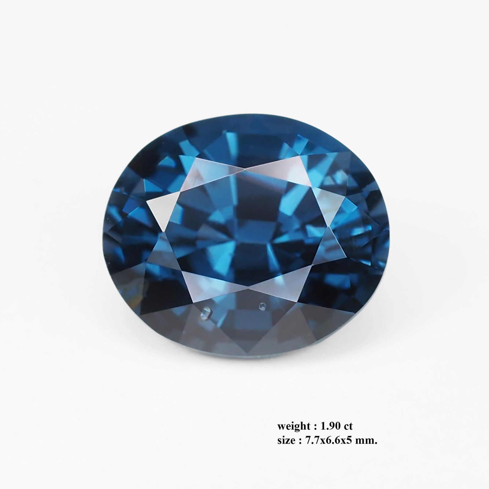This exquisite Tanzanian spinel captivates with a deep, velvety blue that shimmers with jewel-bright facets. Measuring 7.7 × 6.6 × 5 mm and weighing 1.90 carats, this oval-cut gem displays remarkable fire and a crisp, high-clarity silhouette. Its rich blue hue, enhanced by precise cutting, offers a striking balance of classic elegance and modern sparkle, making it an exceptional centerpiece for any refined collection.
