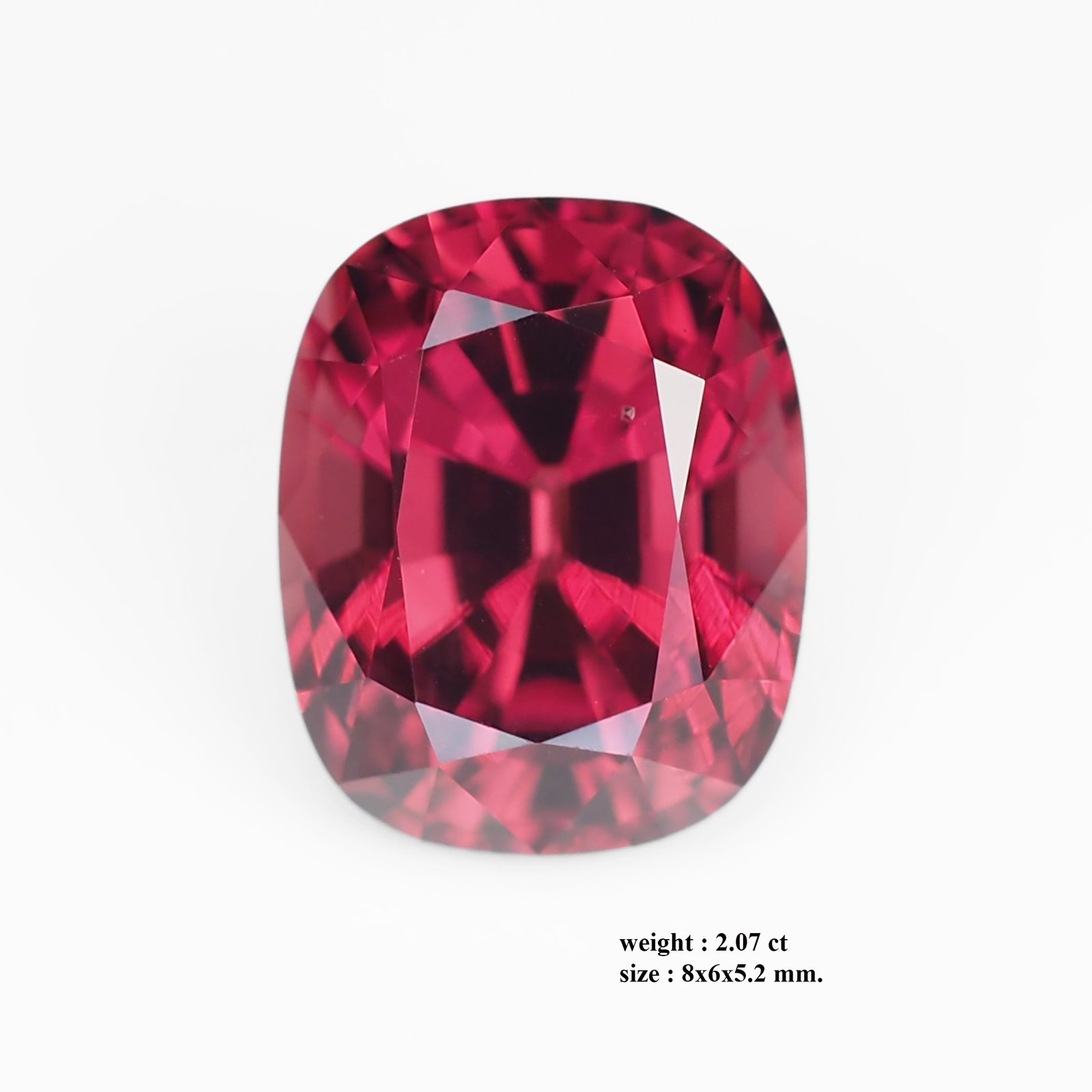 Naturally occurring Burma red spinel, this gem dazzles with a rich, saturated crimson that deepens to a plush raspberry at its core. A 2.07 ct cushion-cut jewel measuring 8.0 × 6.0 × 5.2 mm, it harmonizes bright brilliance with deep warmth. Faceted to spark a lively fire, it offers a regal glow, superb clarity, and durable wear for everyday elegance. A timeless statement piece, it embodies the romance of Burmese gemstones with contemporary appeal.