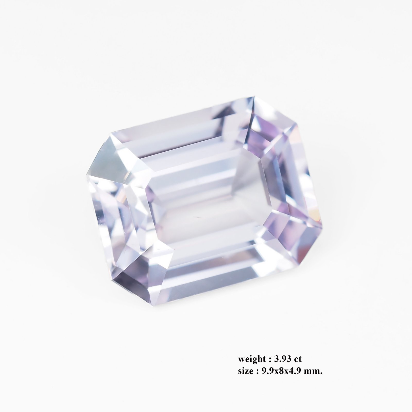 This exquisite Burma natural spinel, cut to an elegant octagonal step, radiates a pure, cool brilliance that captures light with every facet. Weighing 3.93 carats and measuring 9.9 × 8.0 × 4.9 mm, its balanced proportions create a refined, contemplative glow—perfect for a timeless engagement piece. The stone’s delicate lavender-blue hue hints at romance and grace, while its crystal clarity and precise facet work reflect a discipline of artistry. A gemstone of quiet sophistication, it promises steadfast brilliance as a symbol of lasting commitment.