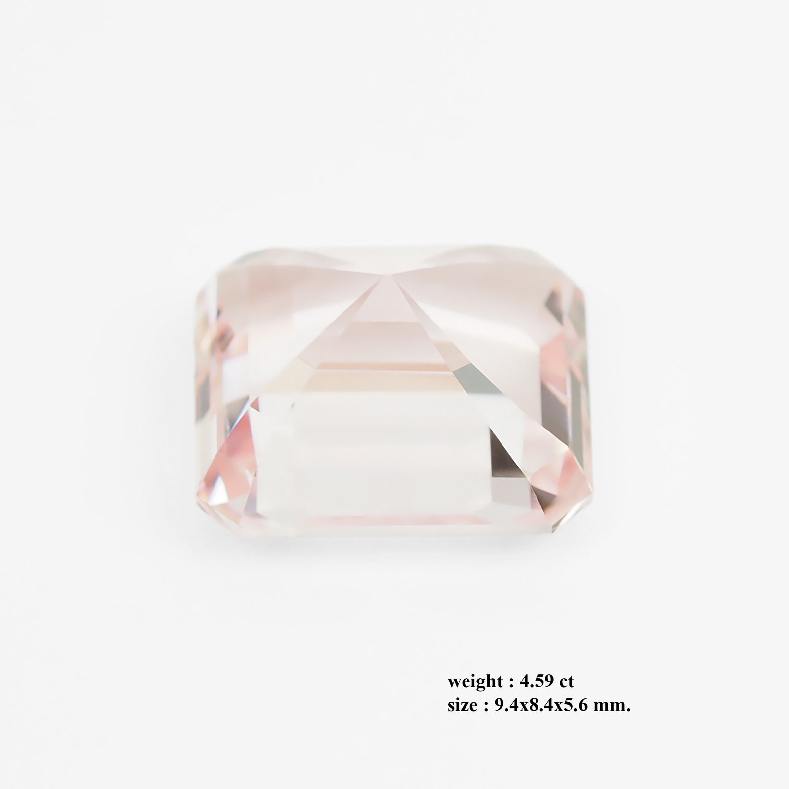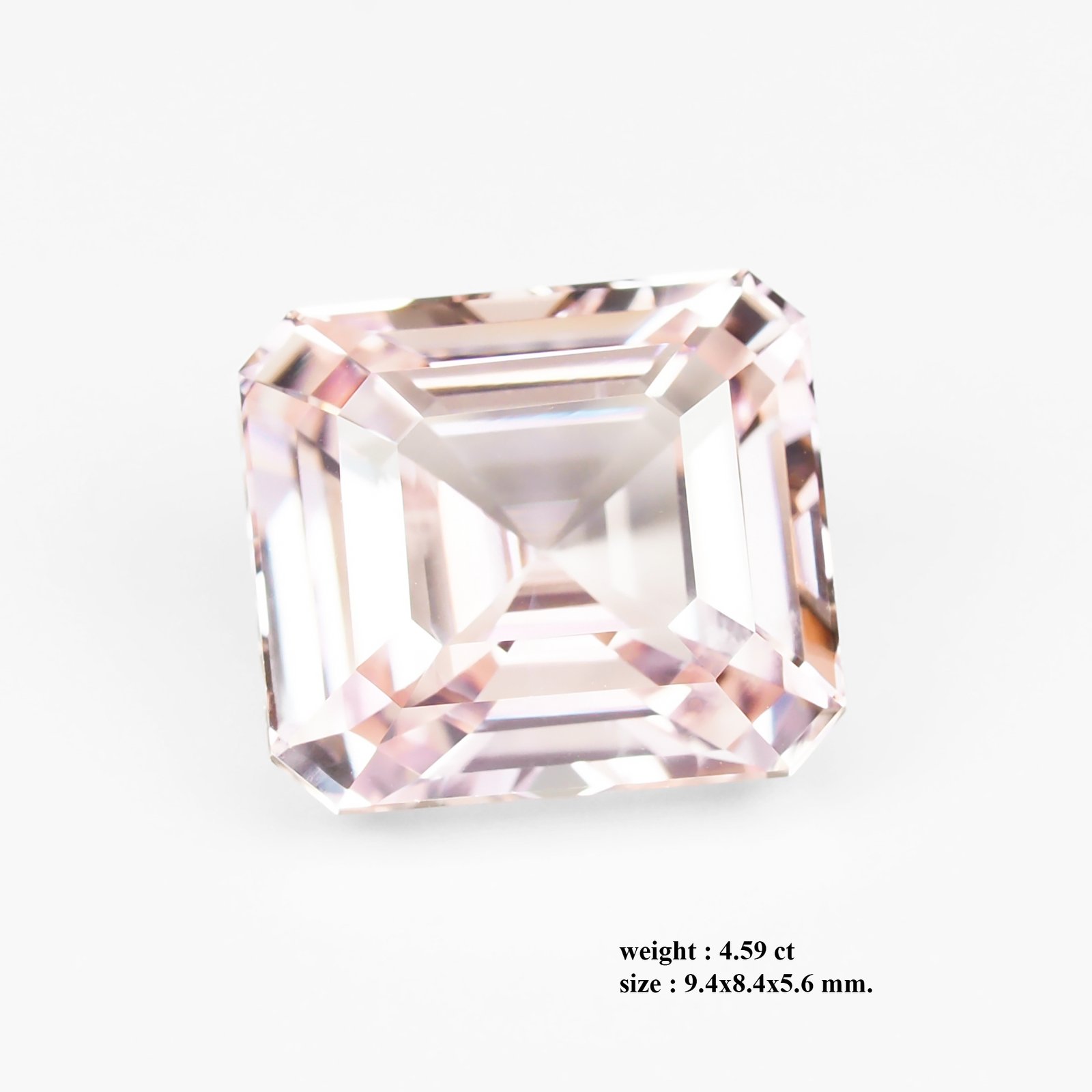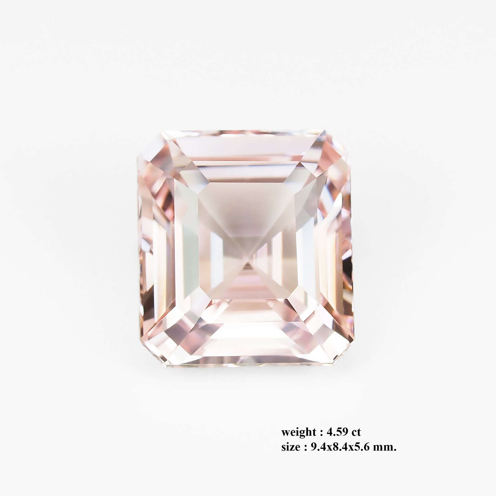 The Radiant Whisper of a Padparadscha Sapphire: A stunning natural unheated Padparadscha sapphire of 4.59 ct (9.4 × 8.4 × 5.6 mm), with naked-eye clarity and an emerald-cut that glows in a refined palette of pale pink to champagne, shifting with light—an exquisite, highly coveted jewel for the most discerning collectors and connoisseurs.